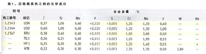 表1,壓鑄模具熱工鋼的化學(xué)成分